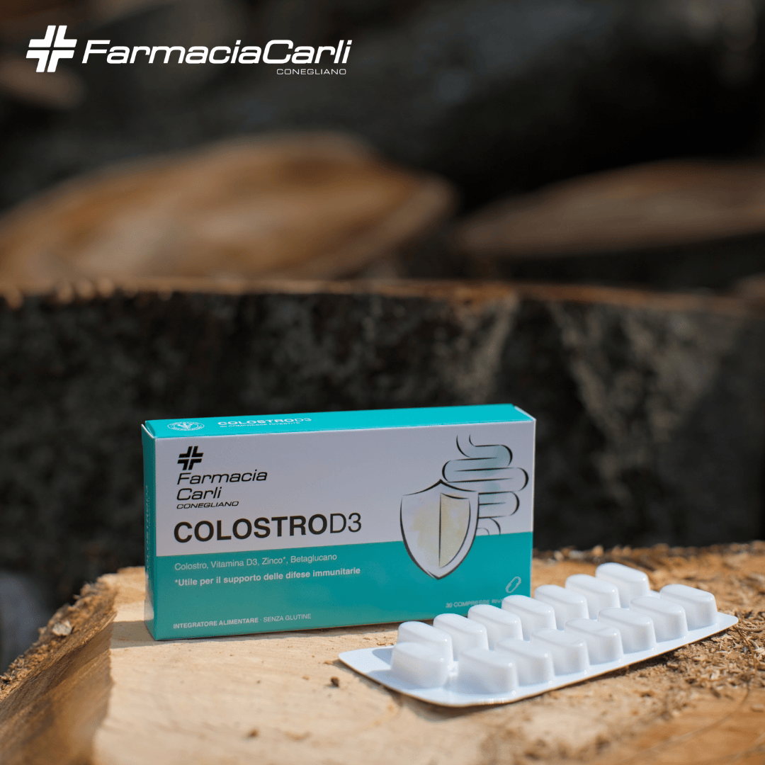 Colostro D3 30 compresse rivestite è un integratore alimentare a base di Colostro bovino, Vitamina D3, Zinco e Betaglucano, studiato per una doppia azione a sostegno delle naturali difese immunitarie e della barriera intestinale. Grazie alla sua formulazione, aiuta a rinforzare le difese di adulti e ragazzi, favorendo al tempo stesso il benessere intestinale. Il Colostro proviene da allevamenti sostenibili ed è arricchito da un alto dosaggio di Vitamina D3 e Betaglucano ad azione immunomodulante. Le compresse sono apribili, adatte anche a chi ha difficoltà di deglutizione, e sono prive di glutine e zuccheri.
