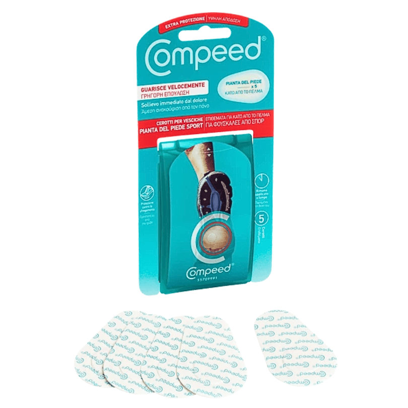 I Cerotti per Vesciche Pianta Piede Sport Compeed sono studiati per offrire sollievo immediato dal dolore e favorire una guarigione più rapida delle vesciche causate da scarpe sportive o attività fisica intensa.