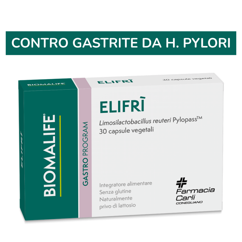 ELIFRI è un integratore alimentare in capsule vegetali a base di Limosilactobacillus reuteri DSM 17648. Questo probiotico contribuisce al mantenimento di un equilibrio intestinale sano e supporta la flora batterica. La sua composizione include cellule non vitali che, grazie alla loro particolare formulazione, possono esercitare un'azione mirata sul tratto gastrointestinale. Adatto a chi cerca un supporto intestinale naturale.