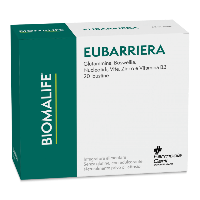 EUBARRIERA è un integratore alimentare in bustine che offre una combinazione unica di ingredienti naturali per favorire la salute del sistema digestivo. Grazie alla boswellia, utile per la funzionalità del sistema digerente, e allo zinco, che contribuisce alla protezione delle cellule dallo stress ossidativo, questo prodotto supporta il benessere intestinale e il mantenimento delle membrane mucose sane. Inoltre, la vitamina B2 e la vite rossa completano la formulazione per un'azione sinergica.