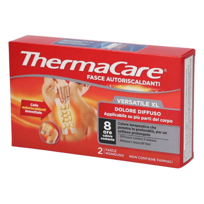 ThermaCare è una fascia termica monouso realizzata in materiale soffice e confortevole, dotata di speciali celle brevettate contenenti componenti naturali (ferro, carbone, sale e acqua) che, a contatto con l’ossigeno, sviluppano calore costante e prolungato. Questo calore terapeutico migliora la circolazione sanguigna nei tessuti, favorendo l’ossigenazione delle zone interessate, riducendo il dolore e rilassando la muscolatura. Ideale per dolori muscolari, tensioni, stiramenti, distorsioni, artrite e affaticamento, agisce direttamente sul punto dolente senza l’uso di farmaci. La fascia è sottile, discreta, priva di odore e clinicamente testata per favorire il rilassamento muscolare.