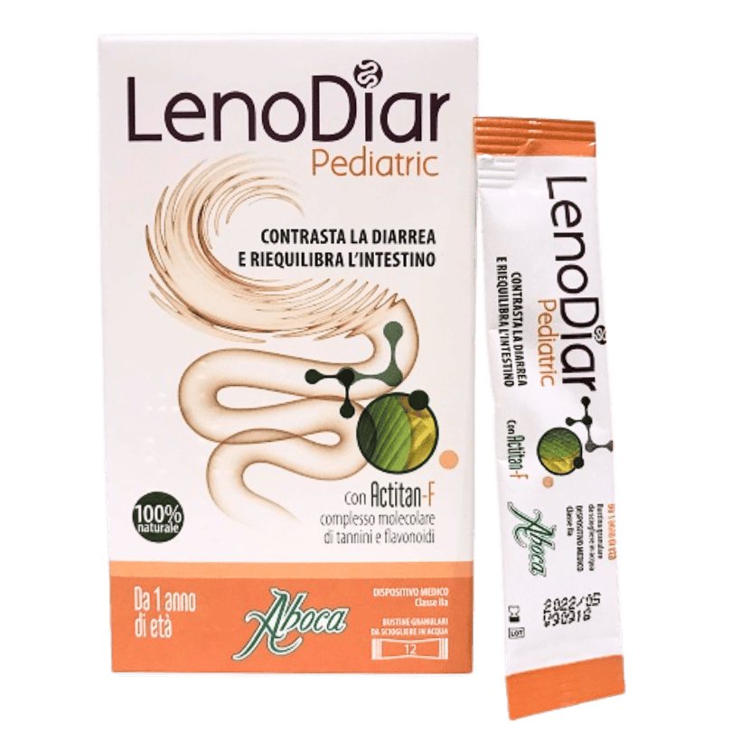 Questa doppia azione permette di ridurre l’infiammazione della mucosa intestinale, rispettando la fisiologia dell’intestino senza provocare stipsi. Inoltre, Lenodiar Pediatric favorisce il mantenimento dell’equilibrio del microbiota intestinale. Il prodotto è senza glutine e presenta un sapore gradevole.