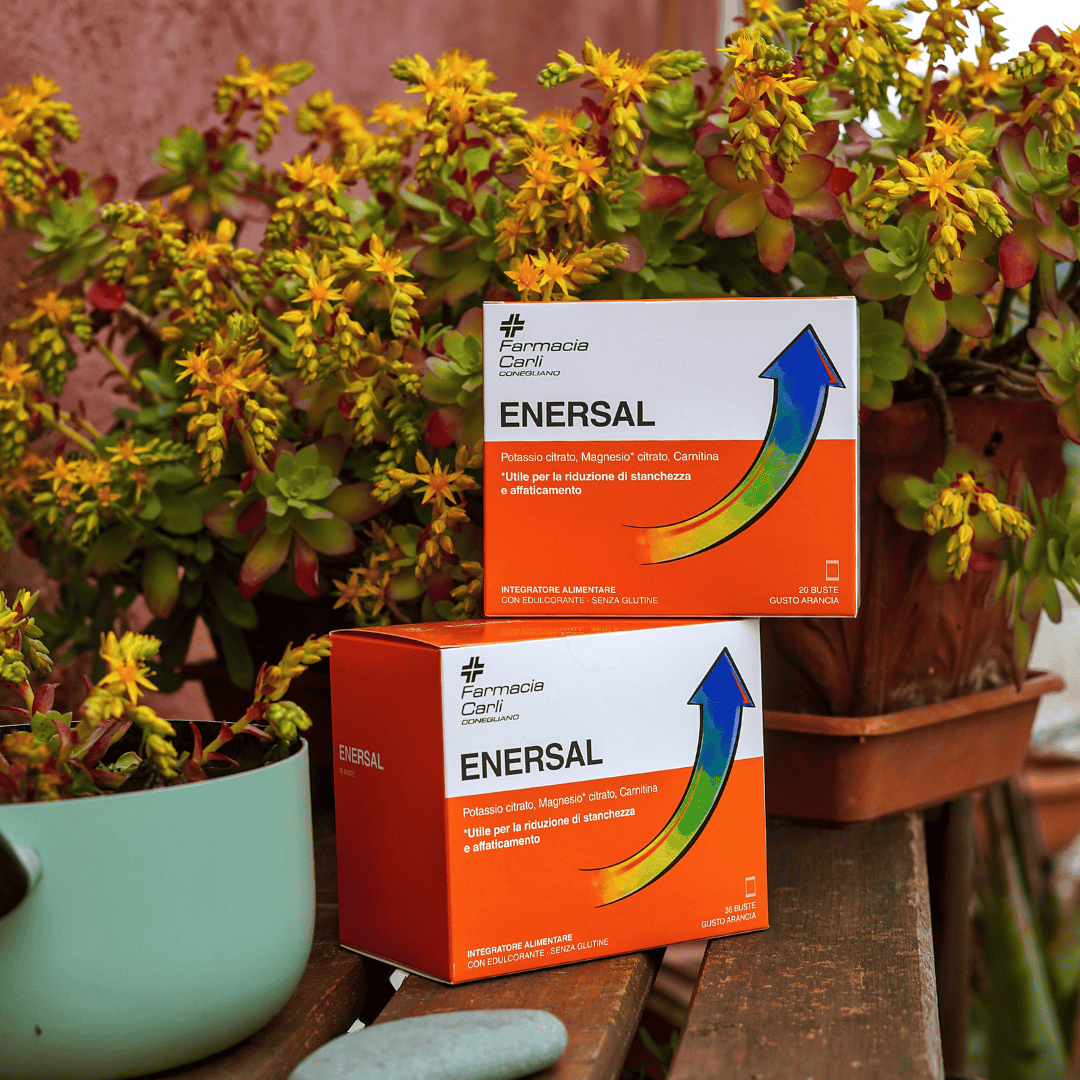 ENERSAL è un integratore alimentare contenente Magnesio, Potassio e Carnitina, ideale per reintegrare i sali minerali persi dopo un'intensa attività fisica, in caso di aumentato fabbisogno o a seguito di sudorazione e perdita di sali minerali. Formulato per ridurre stanchezza e affaticamento, aiuta a ritrovare energia e benessere grazie agli attivi in forma altamente biodisponibile. La Carnitina da biofermentazione garantisce massima qualità e purezza. Senza zuccheri e dal gusto agrumato, è una soluzione pratica e piacevole per mantenere l'equilibrio idro-salino.