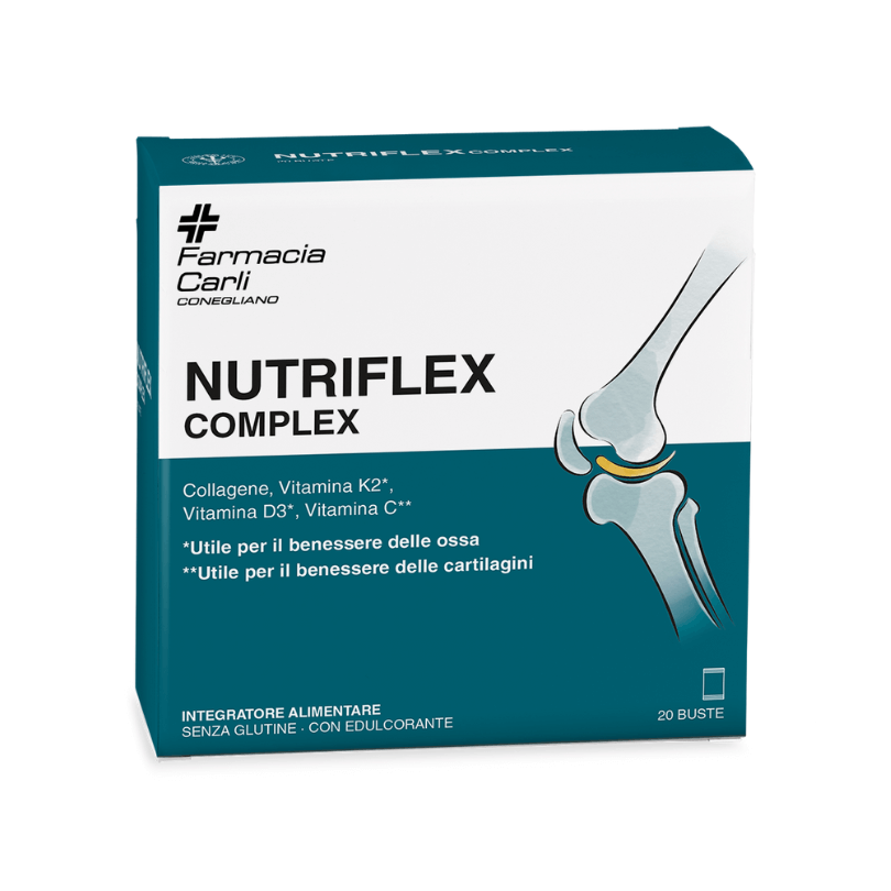 NUTRIFLEXcomplex è un integratore alimentare formulato per supportare la salute di ossa, articolazioni e cartilagini. Con una combinazione di Collagene FORTIGEL®, Vitamina K2 K2VITAL®, Vitamina D3, Vitamina C, Vitamina E e Manganese, questa formula offre un supporto completo e mirato per la struttura dell’apparato locomotore.