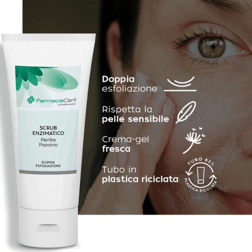 Scrub Enzimatico è un esfoliante delicato che offre una doppia azione di esfoliazione per rinnovare in profondità la pelle. Grazie all’innovativa combinazione di Perlite, un esfoliante meccanico, e Papaina, un esfoliante enzimatica, questo scrub elimina efficacemente impurità e cellule morte, preparando la pelle ai trattamenti successivi.
