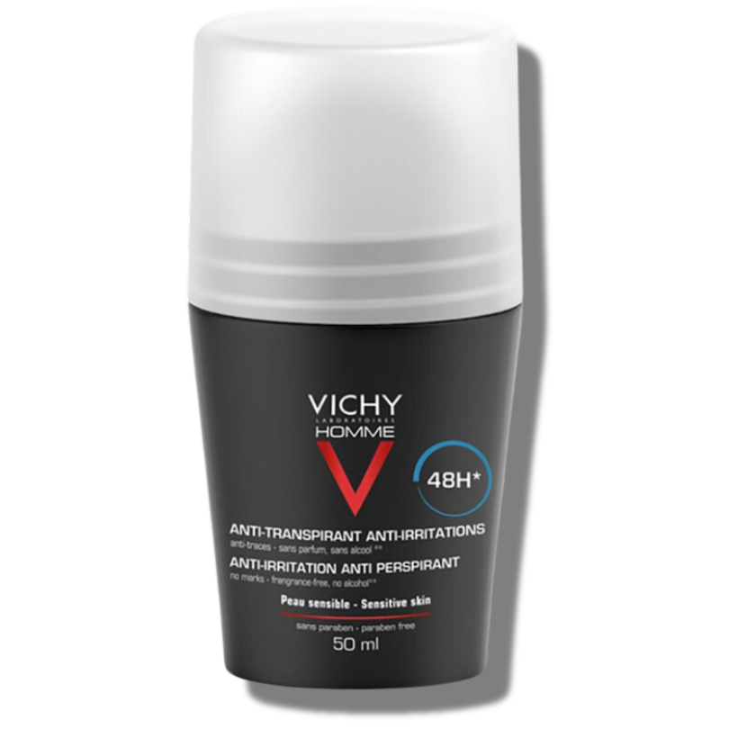 Proteggi la tua pelle con delicatezza e goditi fino a 48 ore di freschezza con il Vichy Homme Deodorante Roll-On 48h Pelle Sensibile.
